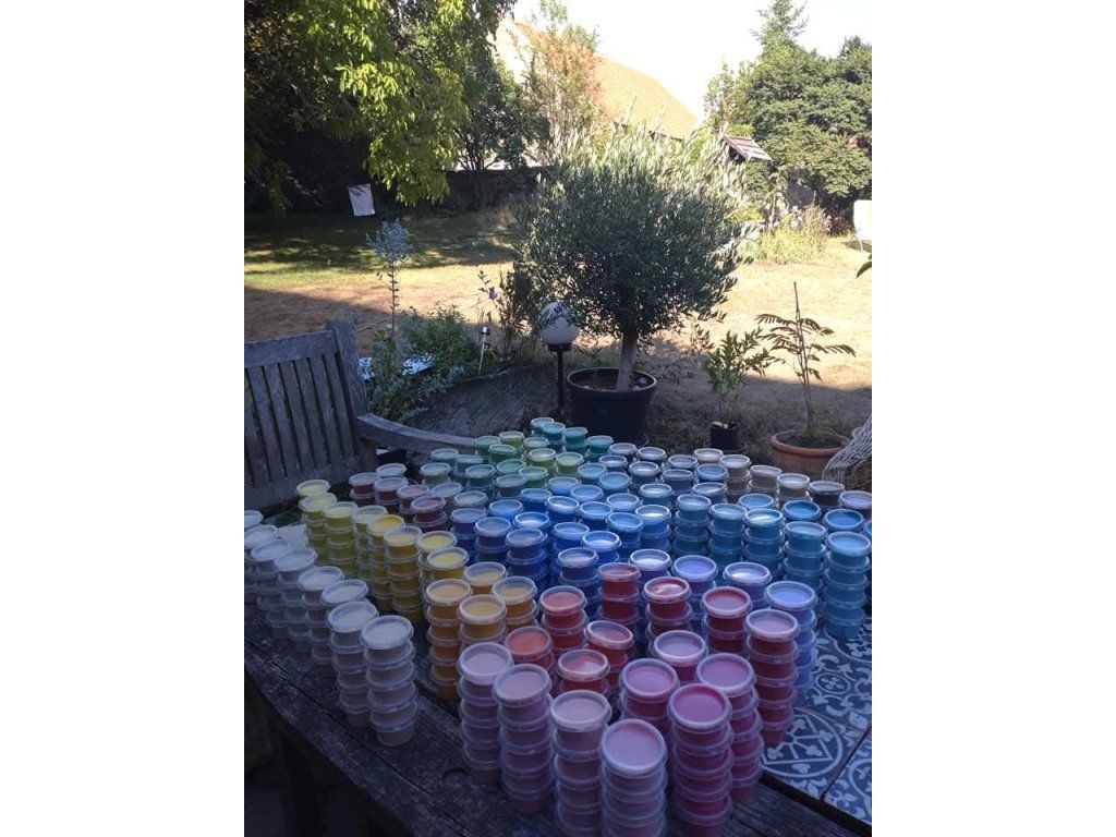 Sady vyrábíme ručně z českorajského písku a děčínských uměleckých pigmentů v naší dílně v Úhercích u Panenského Týnce. Autorkou obrázků je výtvarnice Kamila Rízová.